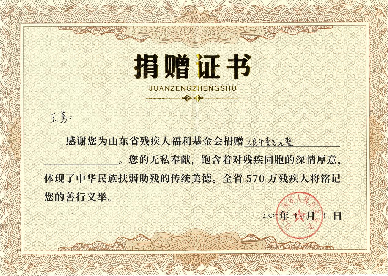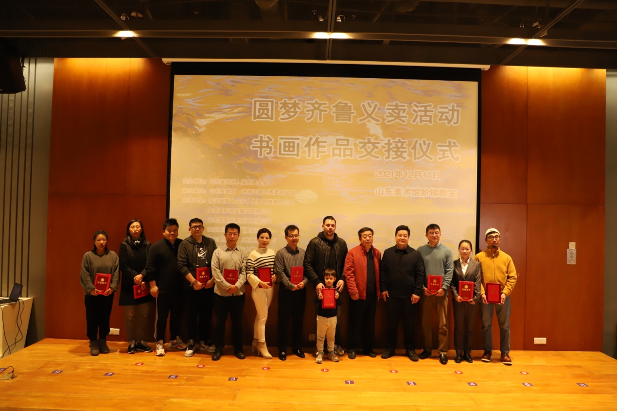 开幕当日,集团党支部书记王勇现场认购5幅书画美术作品。11日,举行“圆梦齐鲁”义卖活动书画作品交接仪式。集团党支部副书记桑守正、文艺部负责人赵莉现场领取捐赠证书,并对王勇书记前期认购的书画作品进行交接。