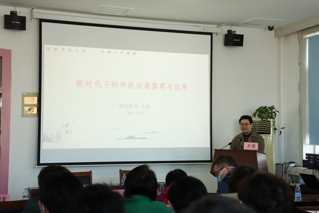 会议中,“博览医书”团队成员万勇受邀作了主题为“新时代下的中医古籍整理与应用”的专题报告。他详细介绍了现今中医古籍的整理近况,基于中医古籍记载的经方构成的清肺排毒汤在疫情防控中所起到的贡献,以及“博览医书——中医古籍数据库”在中医古籍信息化建设中取得的成果展示,并从中医古籍信息化建设的角度向参会成员深入阐述现代信息技术与中医古籍的融合,获得了现场医学从业者和专家学者的广泛好评。