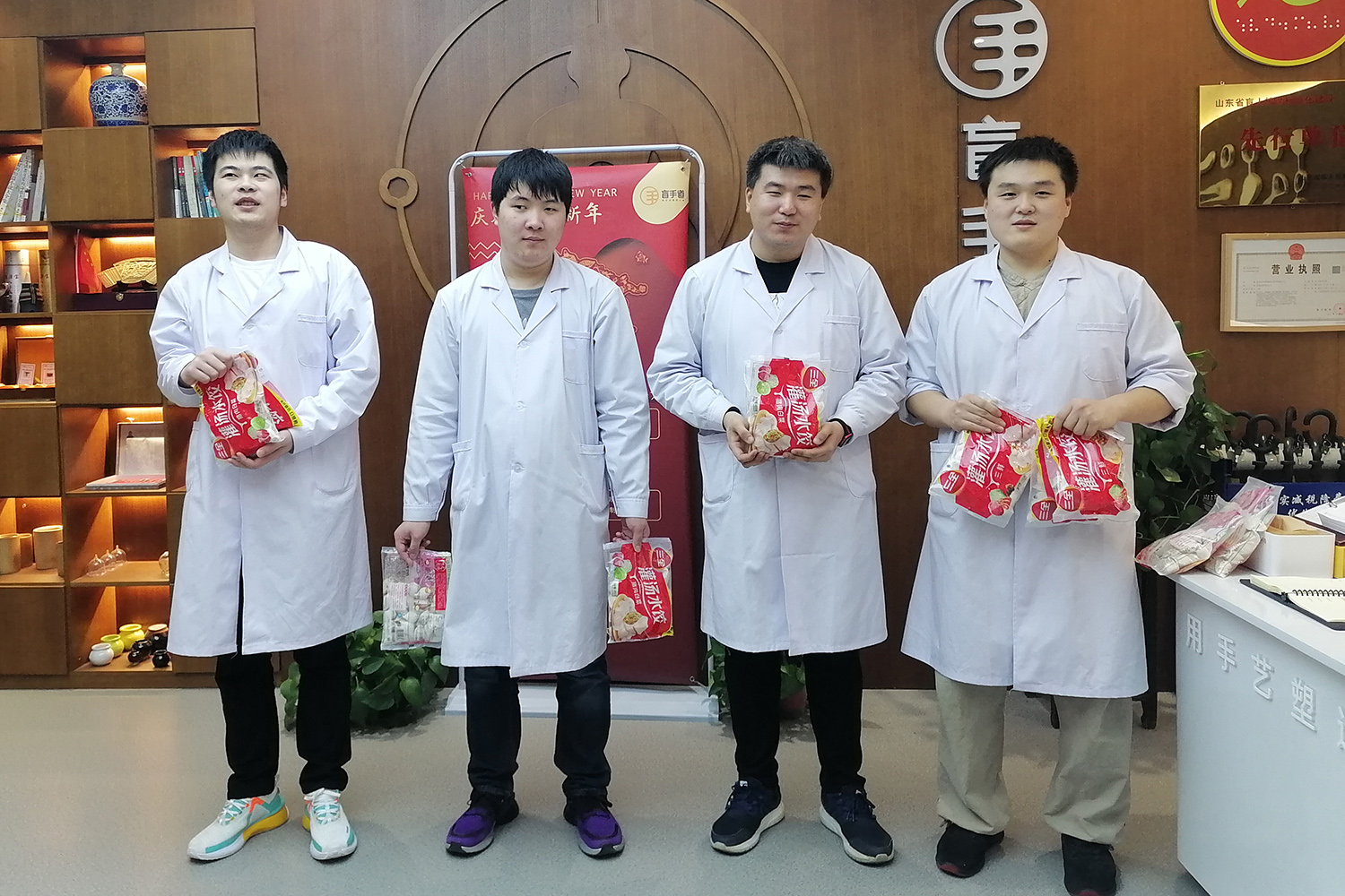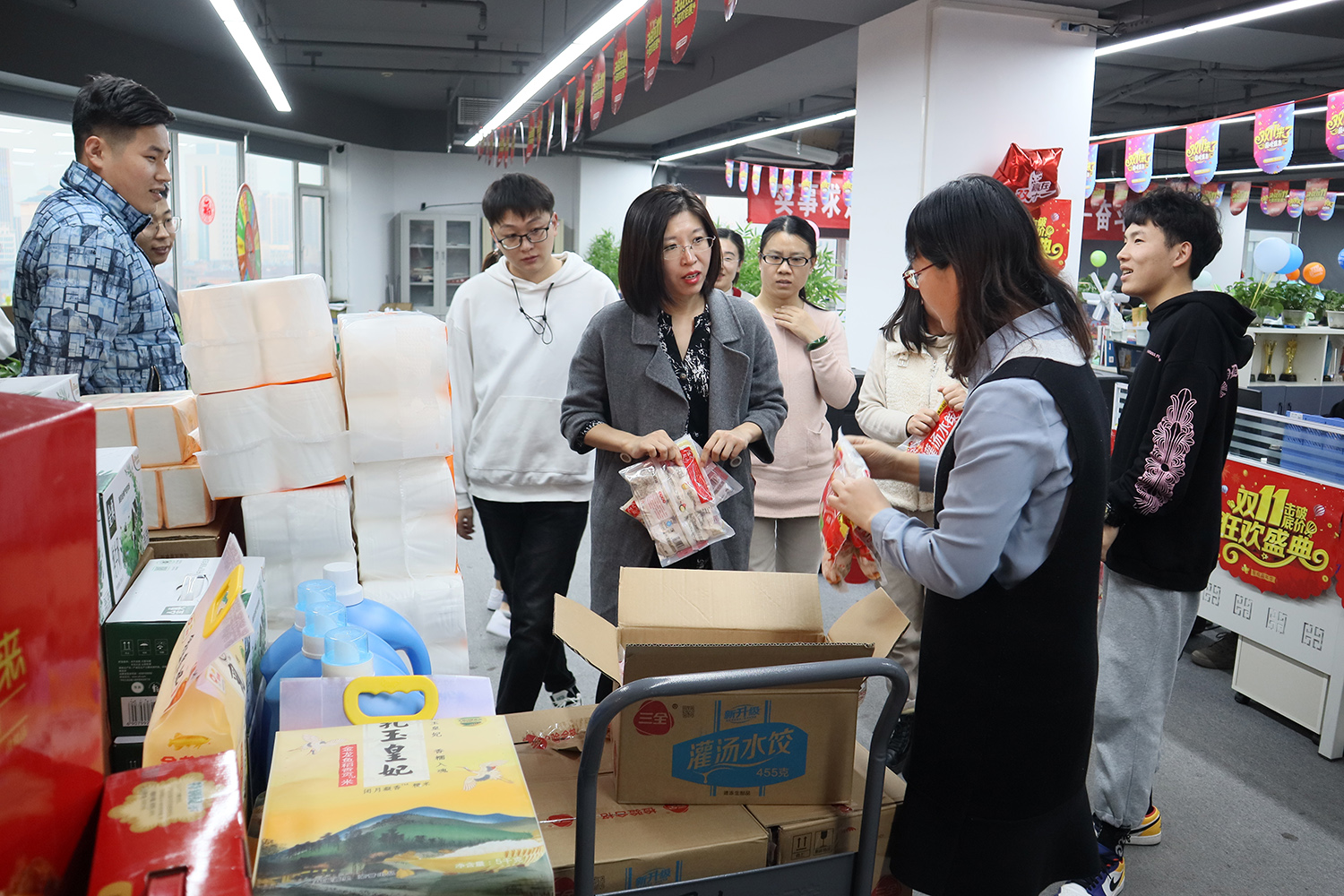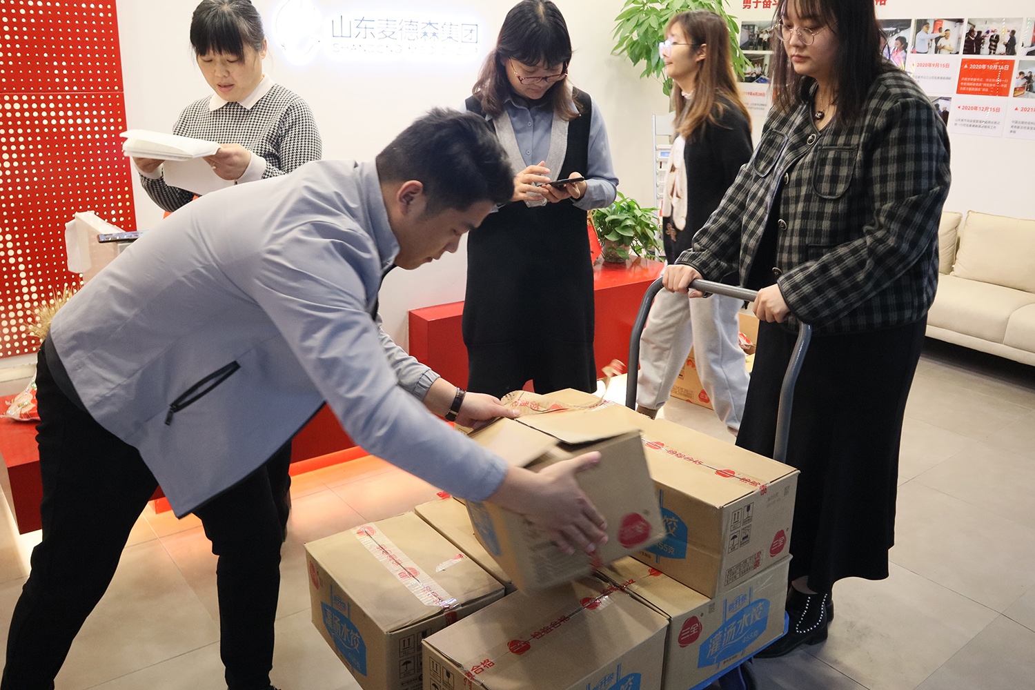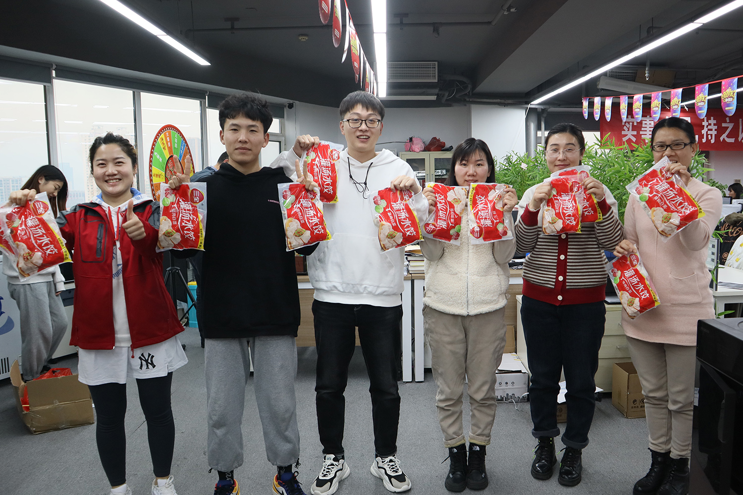 发放现场,在集团工会主席张晶华的组织安排下,麦德森每位职工均收到了情意满满的“幸福水饺”。