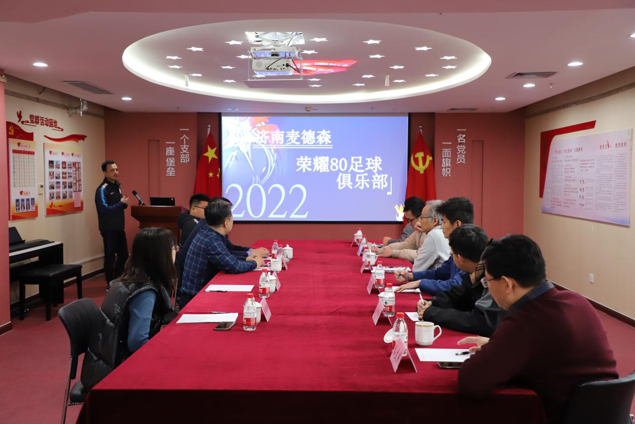 随后,吕汉泉等与麦德森集团代表进行了交流座谈。会上,雷少波就荣耀80足球俱乐部的精英梯队、师资力量、校园足球展示、校外培训活动等7个重要部分进行了全面讲解,并与与会人员交流了未来俱乐部的发展经营规划、日常训练、赛事安排等问题。
