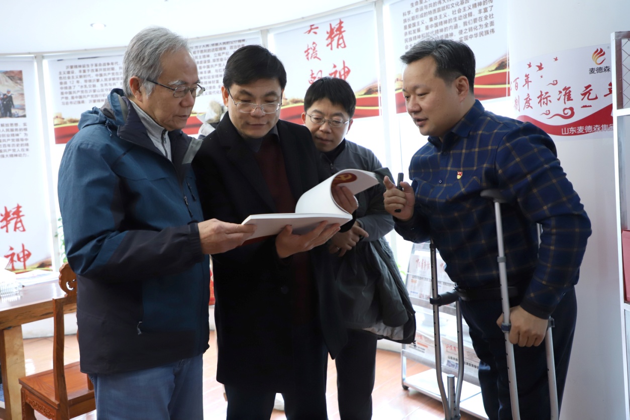 在王勇的解说和引导下,吕汉泉一行先后参观了企业文化墙、集团党建书屋、残疾人文化长廊以及麦德森荣耀80足球俱乐部展架,对集团党建工作和足球赛事取得的成果给予充分肯定。