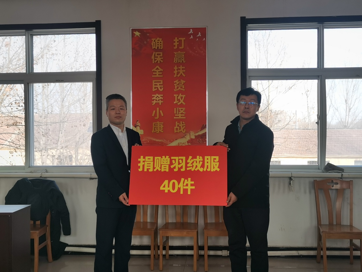 活动中,受集团党支部书记王勇委托,集团执行董事王兴法,集团工会主席、公益部部长张晶华协助省派第一书记,现场捐赠价值20000余元的羽绒服40件。