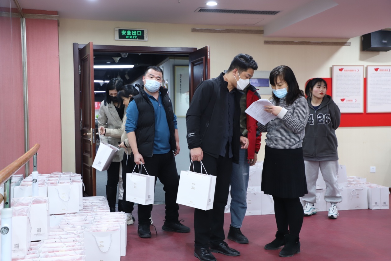 1月25日,必威平台工会为全体员工发放了暖心“年货”,发放现场洋溢着温馨、和谐的喜庆气氛。