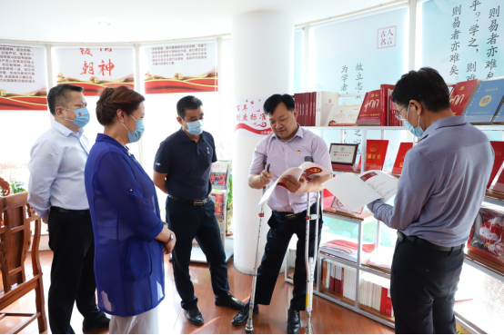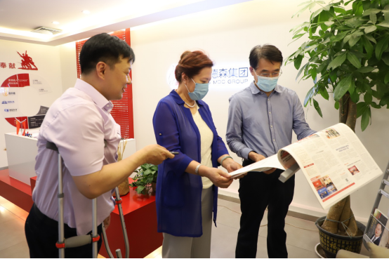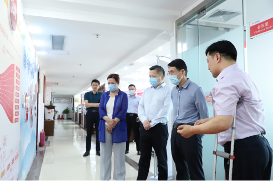 调研伊始,陈贯鹏一行对麦德森企业文化墙、党建书屋等进行了参观,实地查看了集团《党员手抄党章》《“请党放心、强国有我”——麦德森喜迎党的二十大、庆祝建团百年活动记录》等党建工作材料,深入走访了集团各职能部门办公区域,对企业业务开展情况和经营需求进行了深入了解。