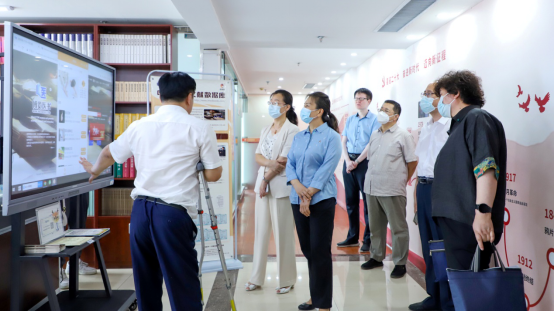 于红一行对麦德森企业文化墙、残疾人文化艺术长廊等进行了参观,实地查看了集团《麦德森人》助残日特刊,《“请党放心、强国有我”——麦德森喜迎党的二十大、庆祝建团百年活动记录》以及各线下媒体平台关于麦德森党建成果报道等党建工作材料。