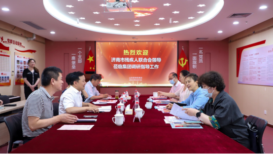 6月9日,济南市残疾人联合会党组书记、理事长于红,市残联党组成员、副理事长刘红卫等一行4人莅临必威平台(下称“麦德森”),调研集团残疾人就业、文创就业工作。历下区残联党组书记、理事长何力明,麦德森集团党支部书记王勇、副书记桑守正、总经理张天君等陪同调研。