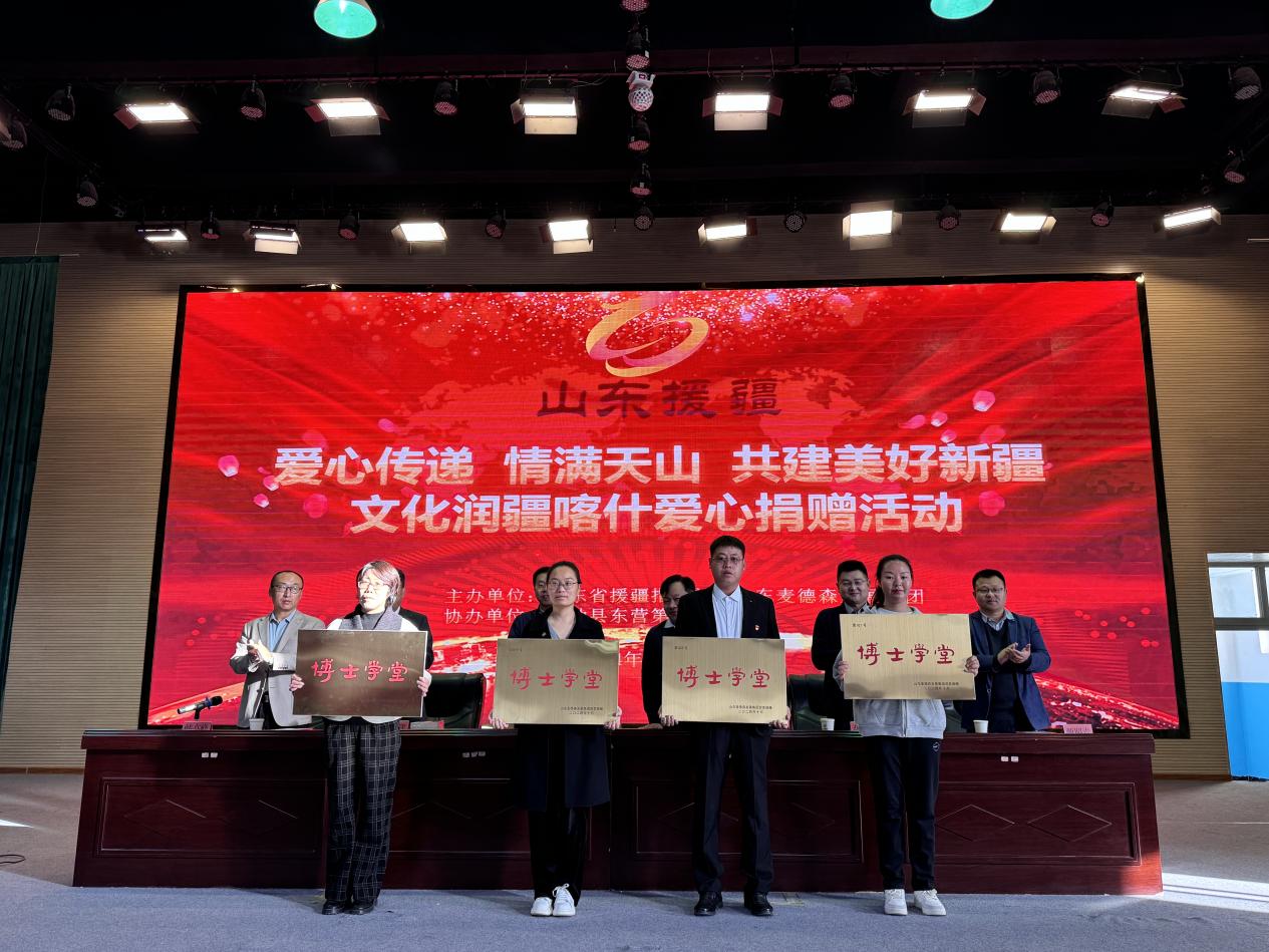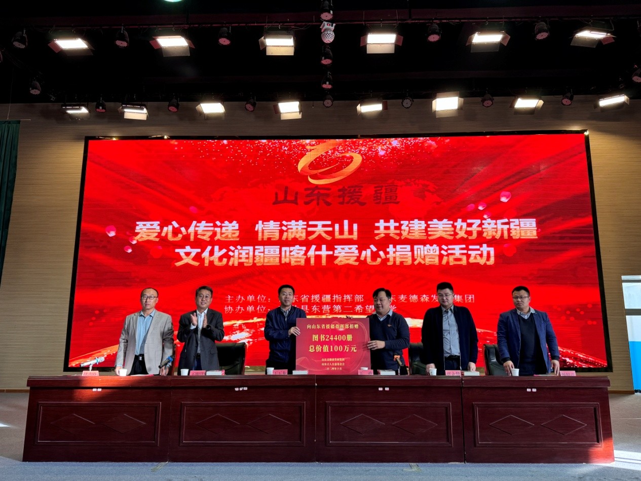 活动中,山东麦德森发展集团党委书记、董事长王勇向新疆喀什地区捐赠4所“博士学堂”及24400册图书,并以《知识改变命运》为题开展励志公益讲座。