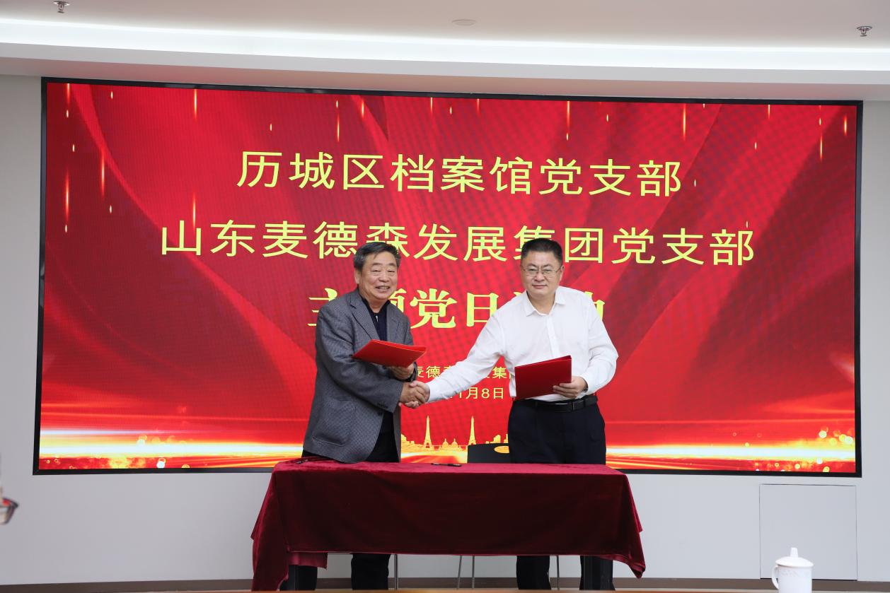 11月8日,历城区档案馆党支部一行莅临山东麦德森发展集团,与集团党委开展联合主题党日活动。