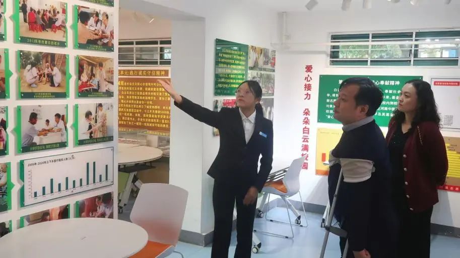 活动中,在书院讲解员的带领下,王勇书记参观了白云苹基金会、尚真书院学生活动中心党团引领区、学业助导区、素能提升区、健康休闲区,深入了解白云苹“自尊自信,自立自强,传承文明,播撒爱心”的宗旨和“感恩自强,爱心奉献,诚实守信”的内涵,以及书院的组织架构、人才培养模式等,并就学生实习就业提出深入的美好愿景。