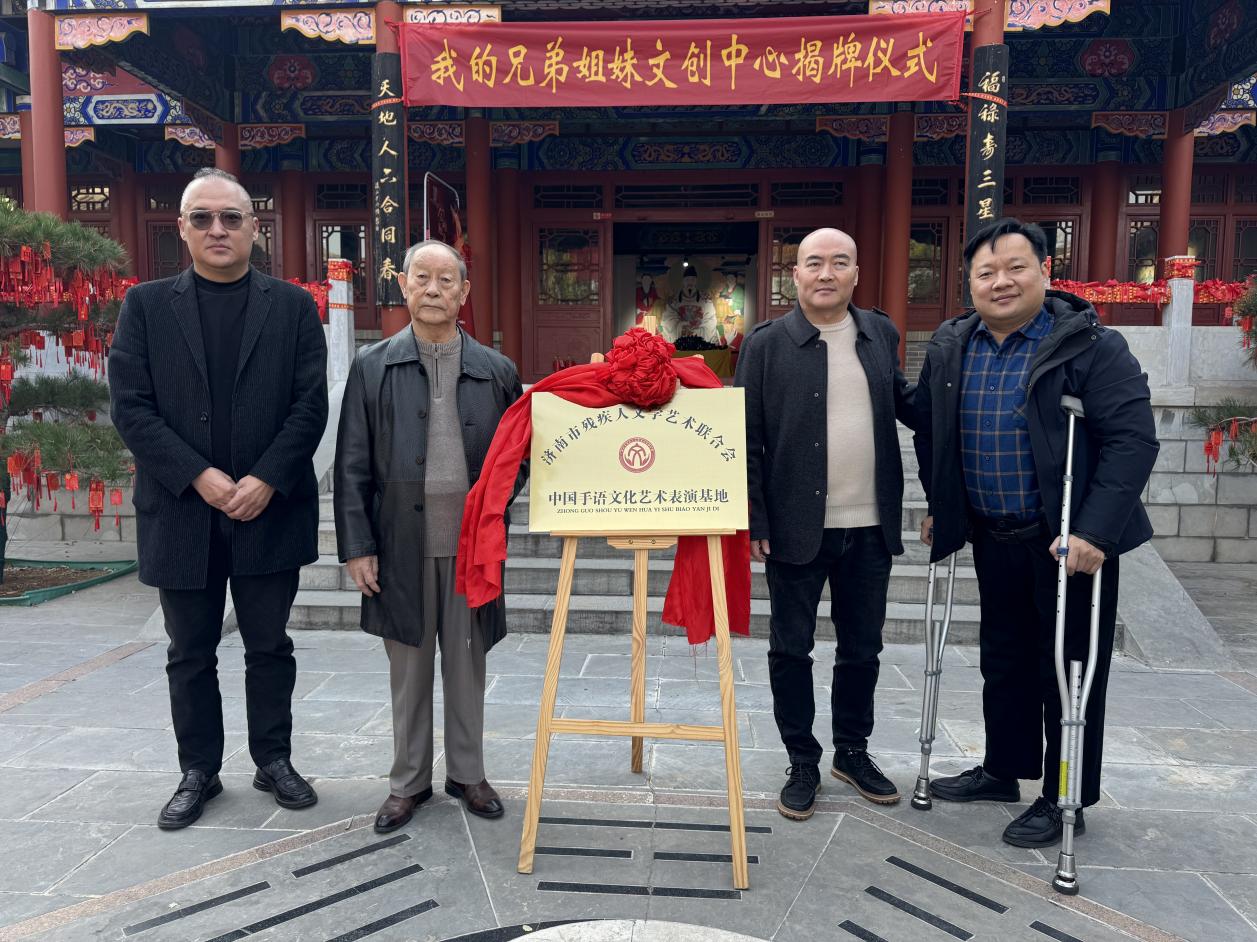 活动中,与会领导一同为“我的兄弟姐妹文创中心”、“中国手语文化艺术基地”揭牌,并颁发文创中心主任聘书与基地主任聘书。