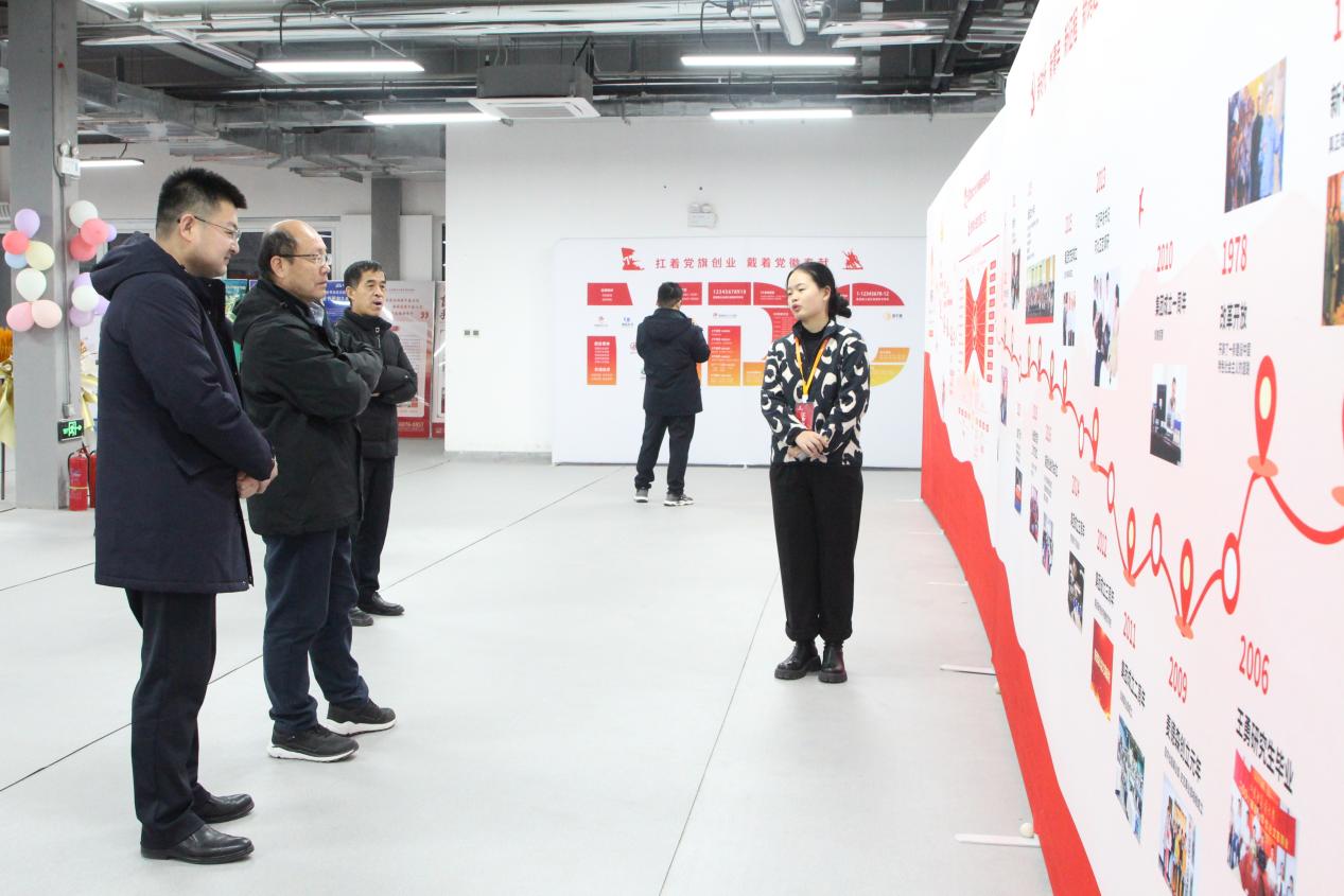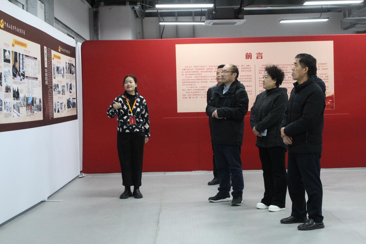 调研期间,济阳区委党史研究中心一行对“铭记百年党史,汲取奋进力量”中共山东百年历史图片展、“凤凰于飞,与党同行”——“两新组织”麦德森党建图片展以及史志部门办公区域等进行了走访参观。
