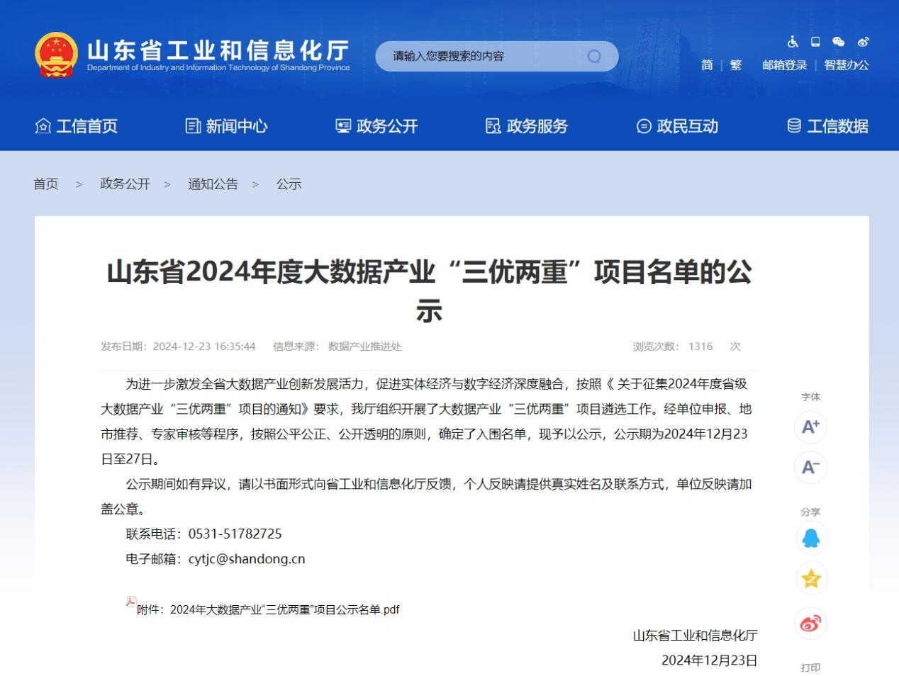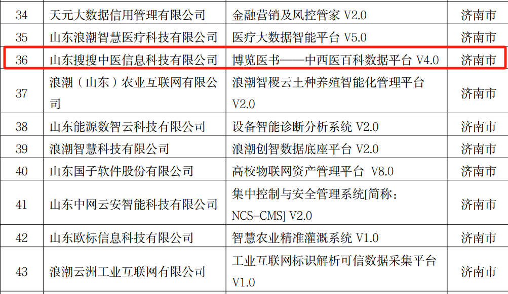 12月23日,山东省工业和信息化厅发布《山东省2024年度大数据产业“三优两重”项目名单的公示》,由山东麦德森发展集团旗下山东搜搜中医信息科技有限公司自主研发的“博览医书——中西医百科数据平台 V4.0”入选“2024 年度山东省优秀大数据产品”。