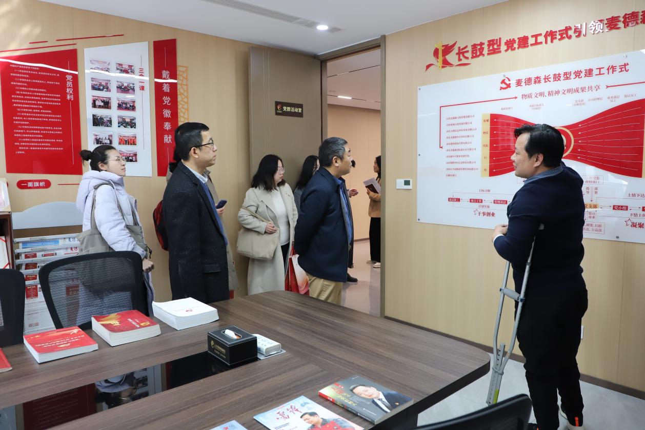 调研期间,山东中医药大学中医文献与文化研究院一行走访参观了集团党建活动室,详细了解集团以“长鼓型”党建工作式引领麦德森共同富裕之路的相关情况。