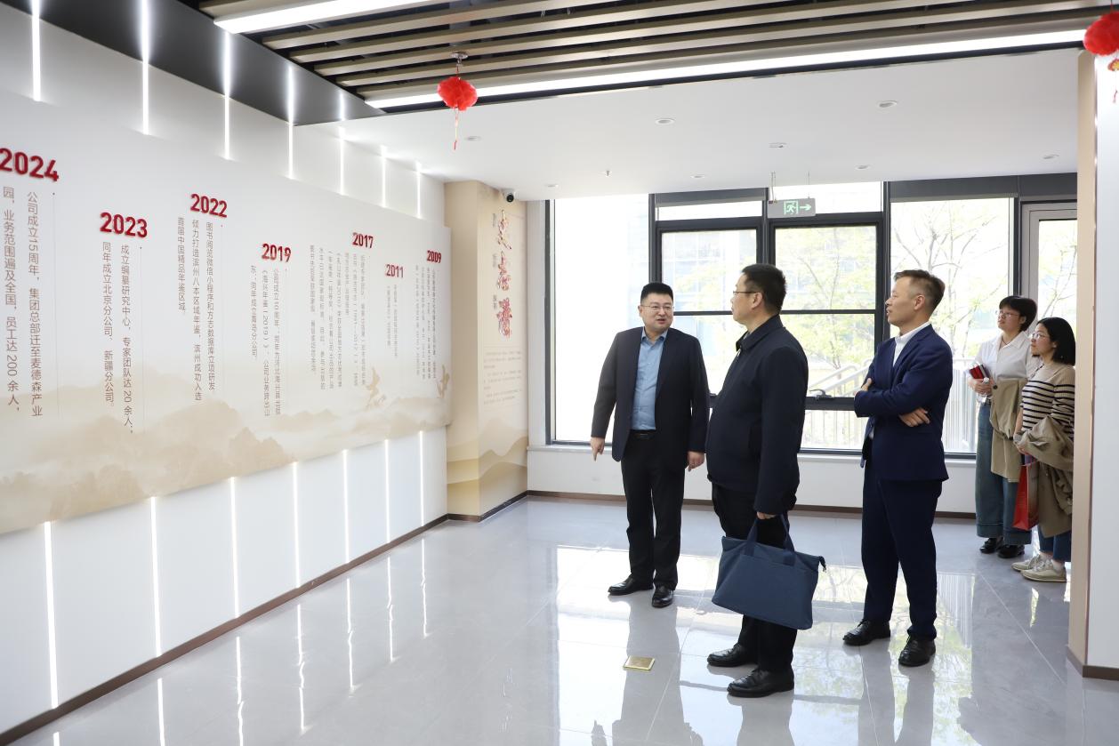 座谈结束后,齐鲁书社一行参观了集团党群活动室、“凤凰于飞,与党同行”——“两新组织”麦德森党建图片展以及各产业部门办公区域,对麦德森党务工作,史志出版、档案数字化、中医药大数据、医学教育出版等产业项目进行详细了解。