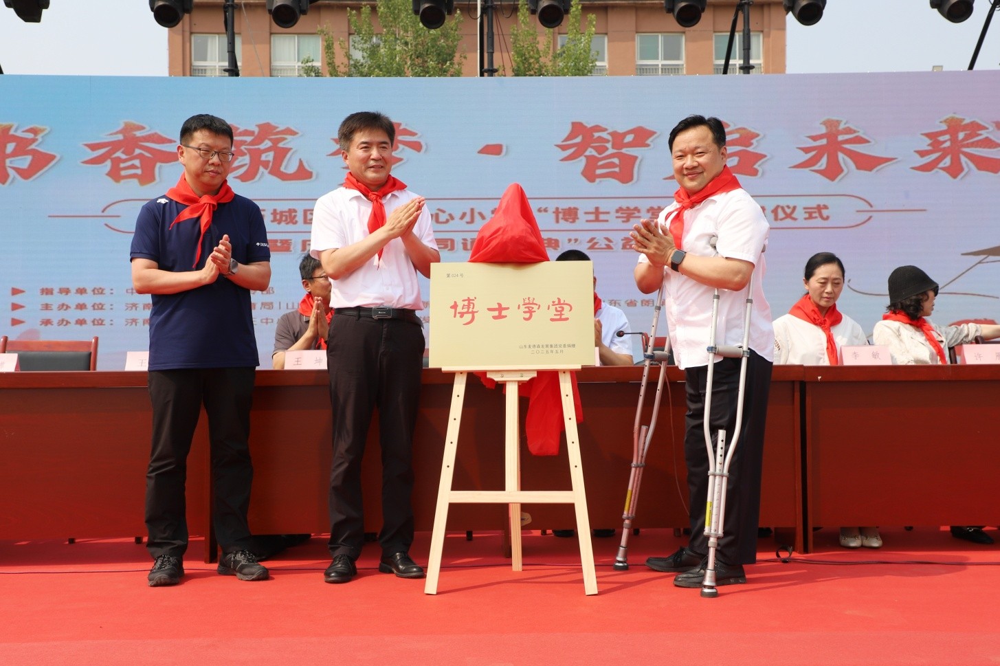 5月28日,在“六·一”国际儿童节即将到来之际,“书香筑梦•智启未来——济南市历城区唐王中心小学‘博士学堂’捐建仪式暨庆六一‘同诵经典’公益活动”在唐王中心小学南校区操场举行。