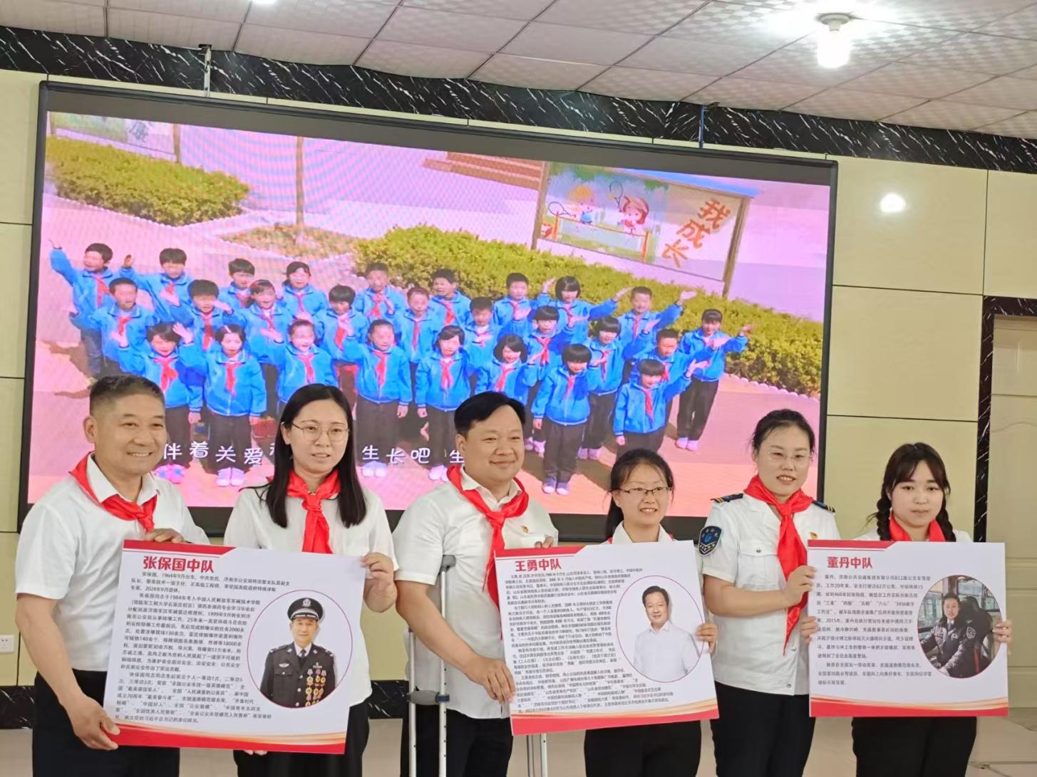 活动现场,“王勇中队”“张保国中队”“董丹中队”三个英雄中队正式命名。王勇书记同全国最美警察、一级英模张保国,文化传承者董丹等校外辅导员从孔凡翼校长手中接过聘书;英雄们走进班级,以亲身经历讲述奋斗故事,为少先队员树立了可触可感的榜样标杆。