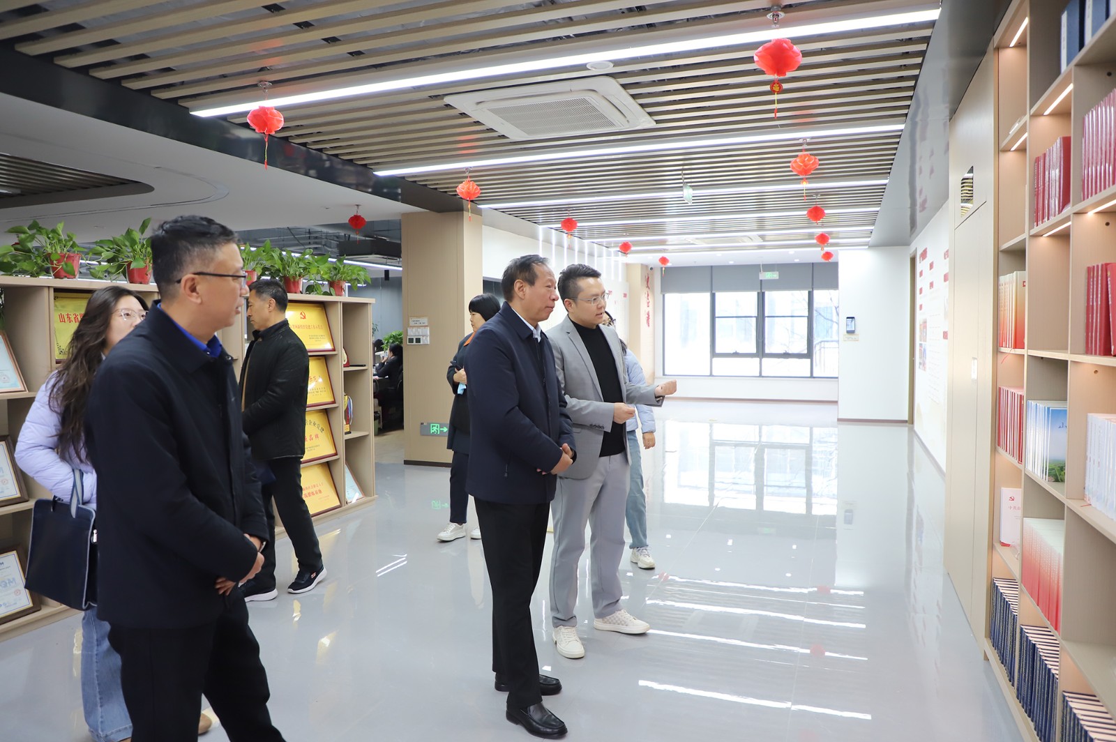 调研期间,济南市市场监督管理局一行先后参观了集团党群活动室、“铭记百年党史,汲取奋进力量”中共山东百年历史图片展、“凤凰于飞,与党同行”——“两新组织”麦德森党建图片展以及各产业部门办公区域,对集团党务工作,史志出版、“博览医书”中医药大数据等产业板块进行详细了解。