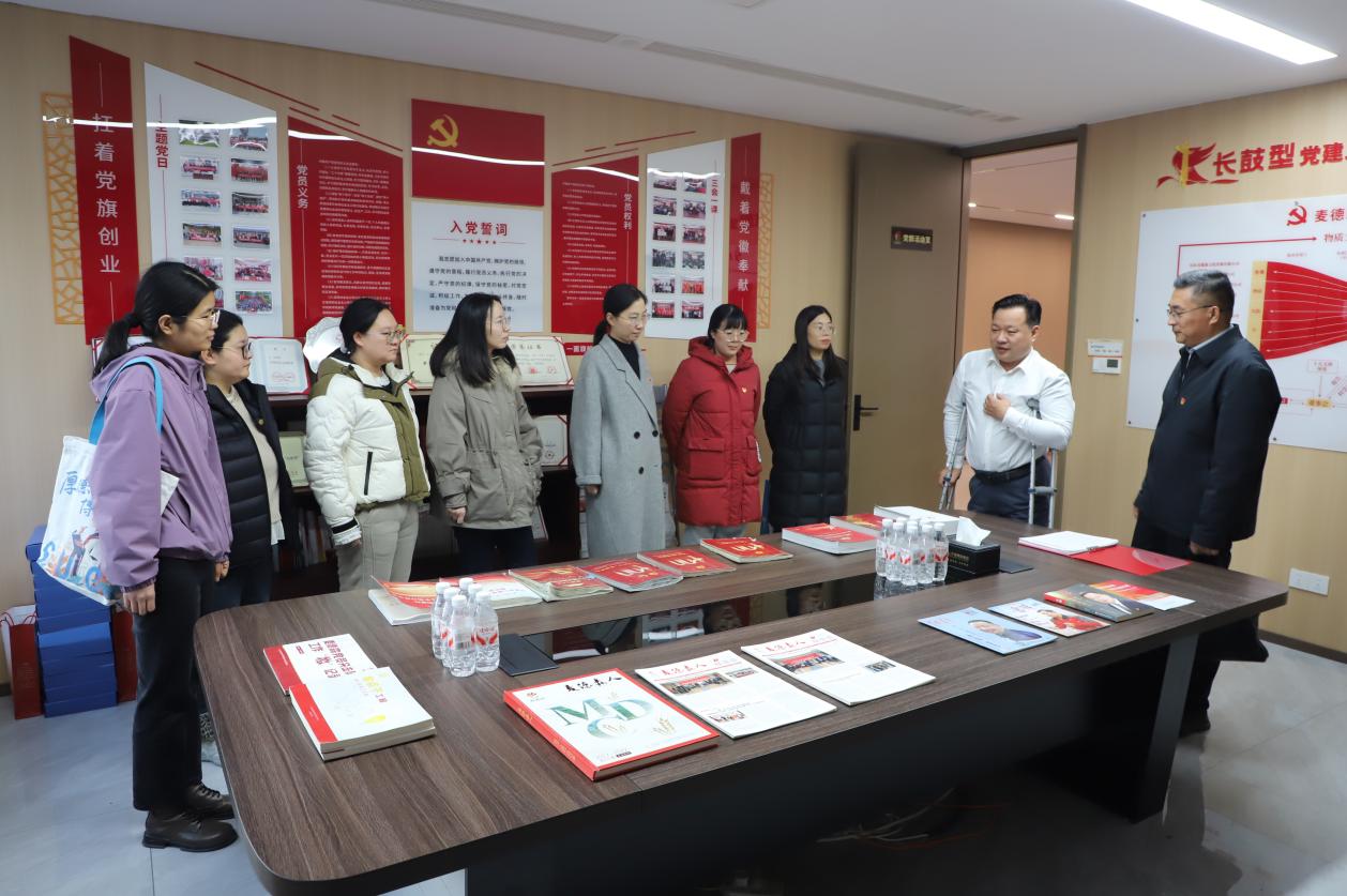 调研期间,山东中医药大学药物研究院一行先后参观了集团党群活动室、“铭记百年党史,汲取奋进力量”中共山东百年历史图片展、“凤凰于飞,与党同行”——“两新组织”麦德森党建图片展以及各产业部门办公区域,对集团党务工作,史志出版、“博览医书”中医药大数据等产业板块进行详细了解。