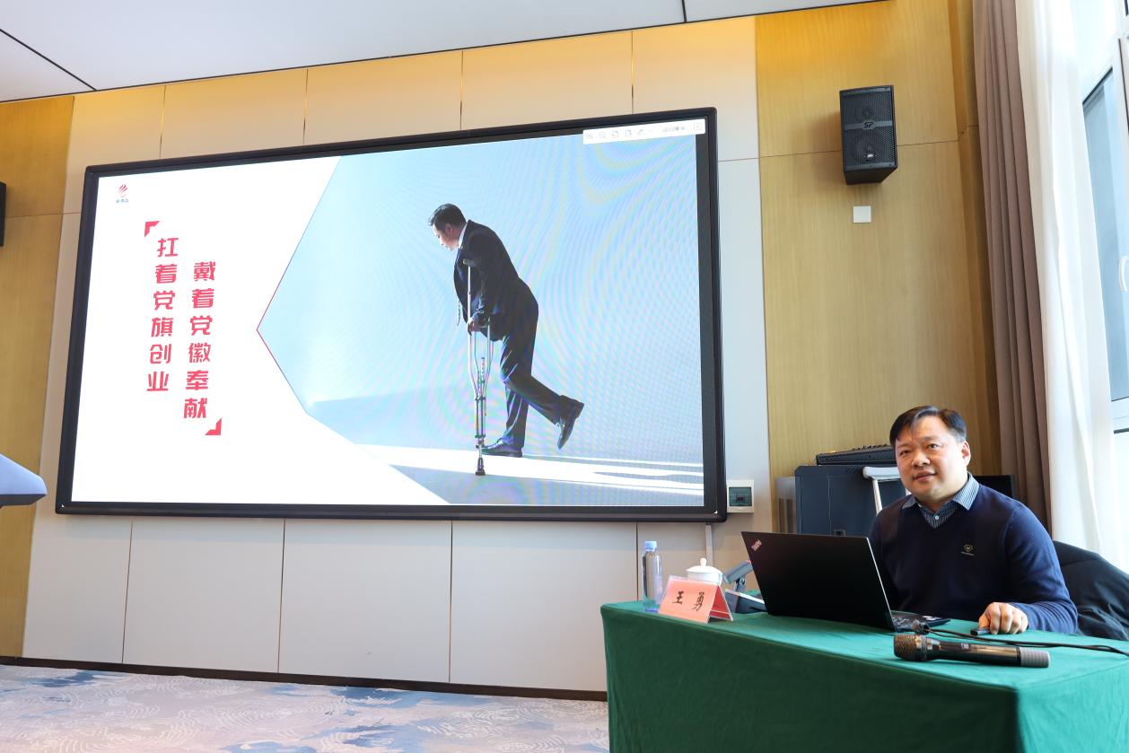 王勇书记结合自身经历,从“探索党建新路径,解锁‘长鼓’新模式”“‘创享工程’再分配,产业发展共富裕”“初心不忘勇奋斗,担当奉献谱华章”三个方面展开报告。他深情回顾幼年克服病痛、勤勉求知的奋斗历程,诠释“知识改变命运”的真谛;分享创业实践中,通过打造党建商学院、推行全员阅读等方式赋能团队成长,引领企业多元化发展的经验;并阐释以党建引领为核心,构建“长鼓型”党建模式与“创享工程”三次分配制度,推动企业高质量发展,同时长期投身助残助学、乡村振兴等公益事业,展现了坚定的理想信念与企业家的责任担当。