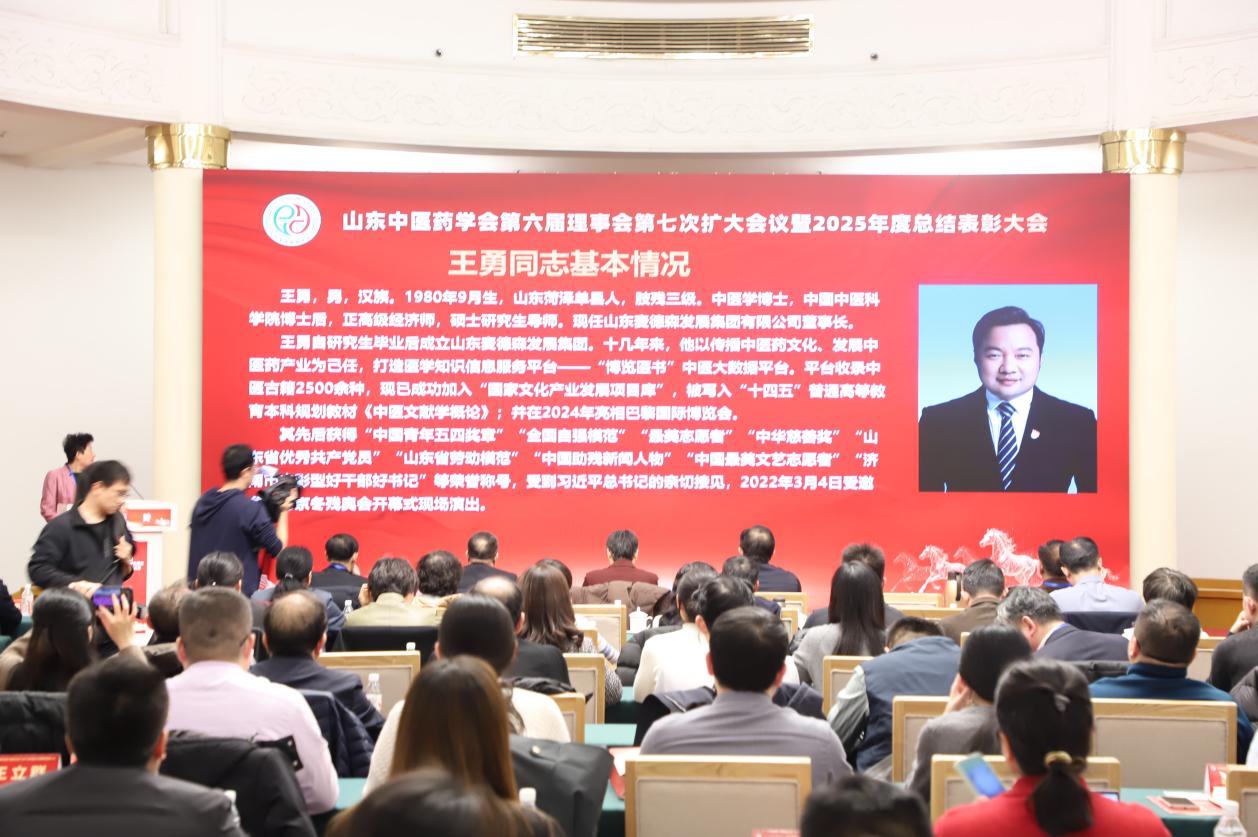 1月24日,山东中医药学会第六届理事会第七次扩大会议暨2025年度总结表彰大会在济南召开。山东麦德森发展集团党委书记、董事长王勇经民主选举当选为山东中医药学会副会长。