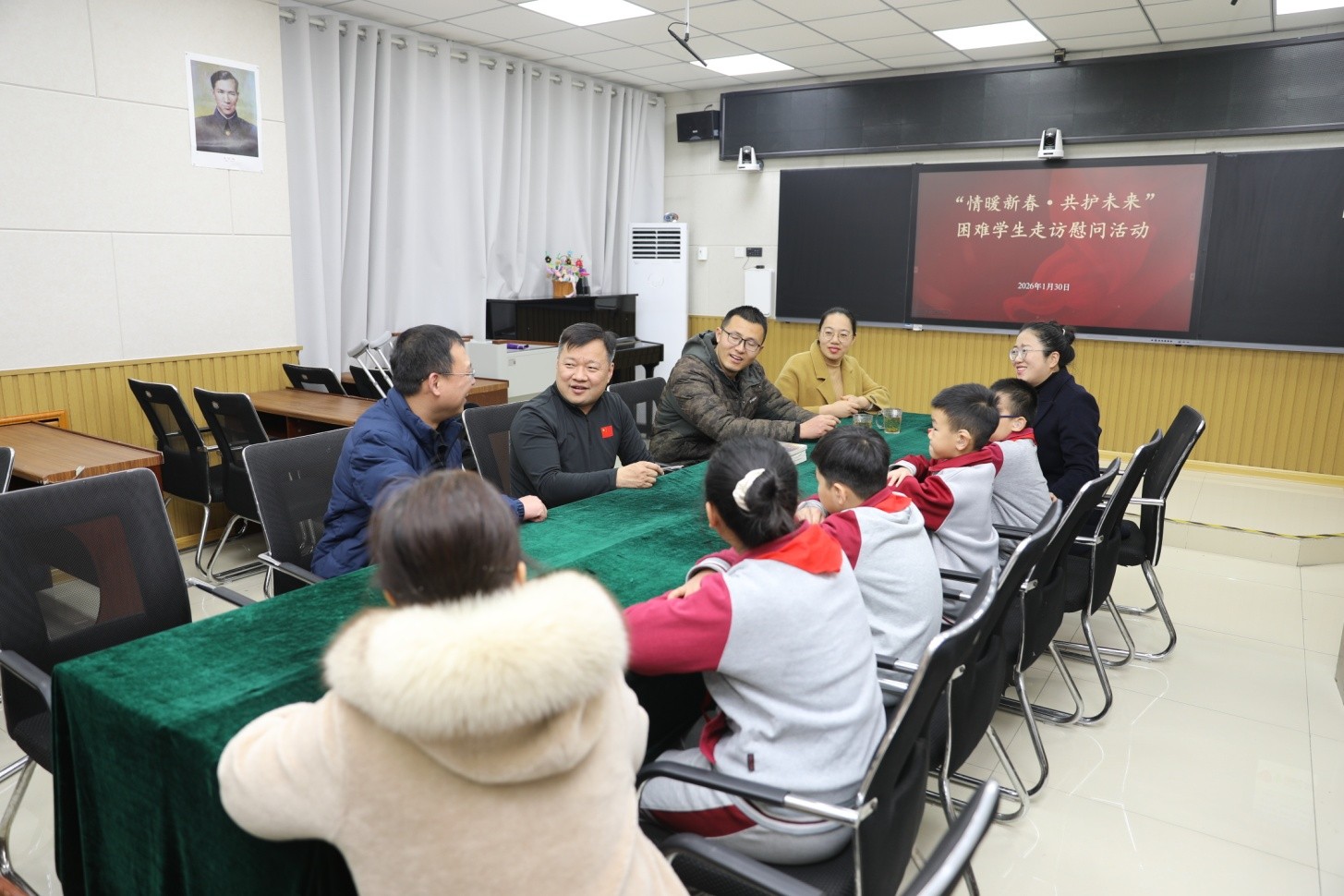 在随后的座谈交流环节,王勇书记与高明主任亲切勉励学生们要自强不息、勤奋学习,以乐观的心态面对生活挑战,并为孩子们送上了新春的祝福。