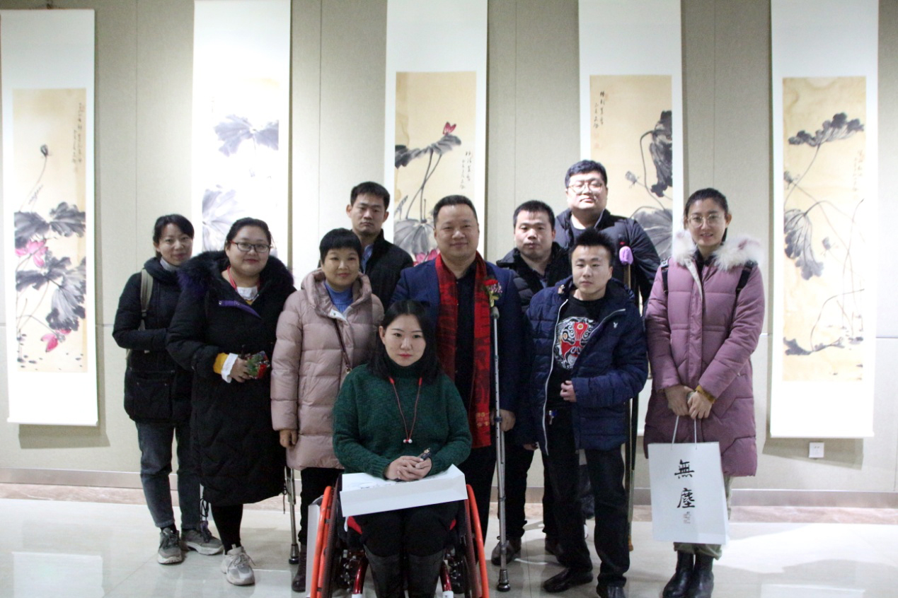 观展结束前,各位领导与在场的残疾人书画爱好者合影留念,同时,王乃坤理事长给山东广大残疾人兄弟姐妹拜早年,祝福大家工作顺利,身体健康,生活幸福。