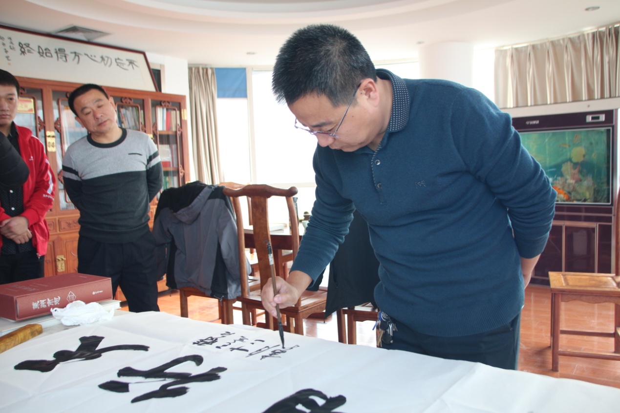 在党建活动室,吴海龙主任参观了党建橱窗,查阅了党建工作材料,对我集团党建工作给予充分肯定的同时,现场泼墨挥毫,留下墨宝。