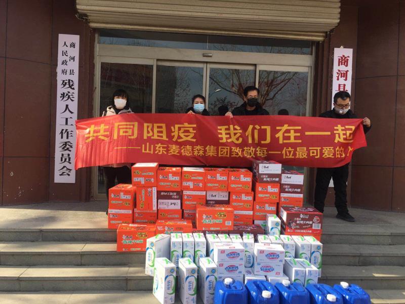 2月18日,我集团党支部书记王勇博士带领企业员工来到济南市商河县残疾人联合会,向当地残疾人同胞捐赠消毒液等总金额六千余元的抗疫物品,助力残疾人兄弟姐妹们共同打赢疫情防控阻击战。