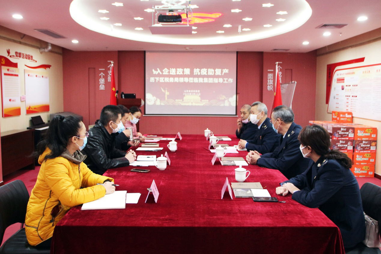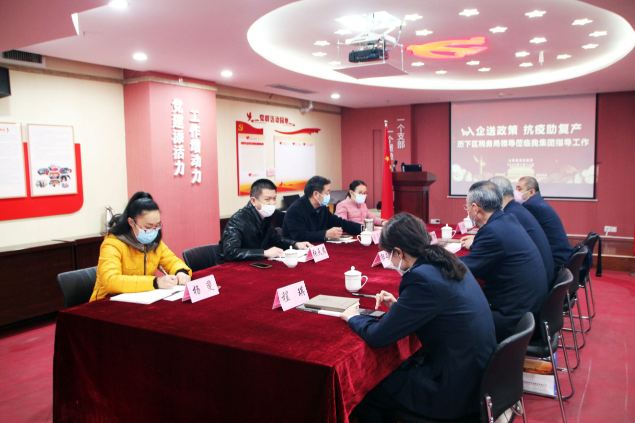 历下区税务局燕山所所长孙茂军一行莅临我集团开展“入企送政策、抗疫助复产”主题座谈