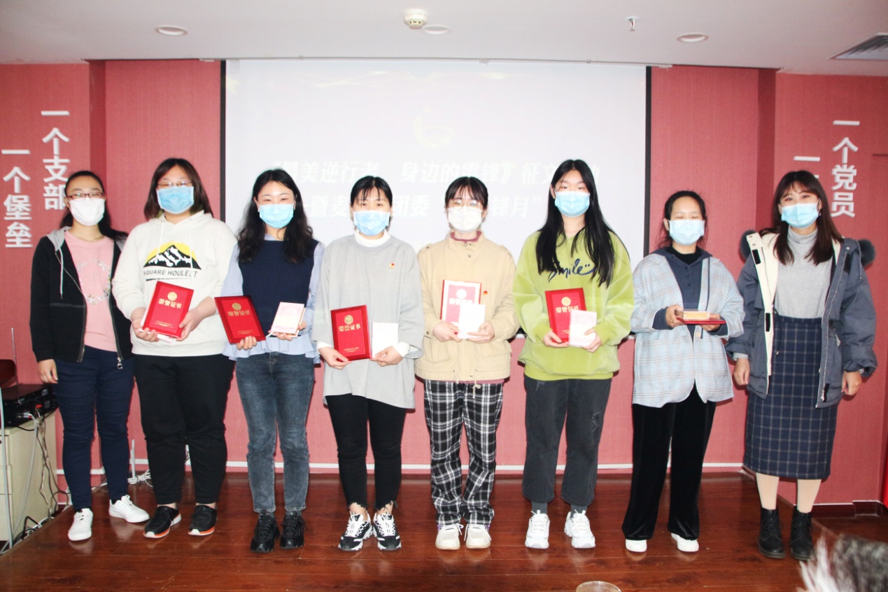 党支部宣传委员杨斐、组织委员张园园为“二等奖”获奖者颁奖