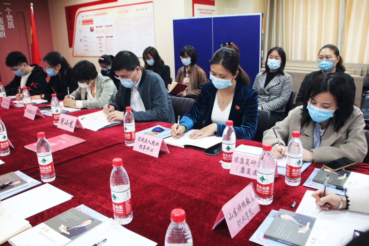 随后,省残联机关单位各位领导与“全国自强模范”代表、“中国青年五四奖章”获得者、我集团党支部书记王勇博士等企业代表在党群活动室共同举行“根在基层”系列调研实践活动座谈会。
