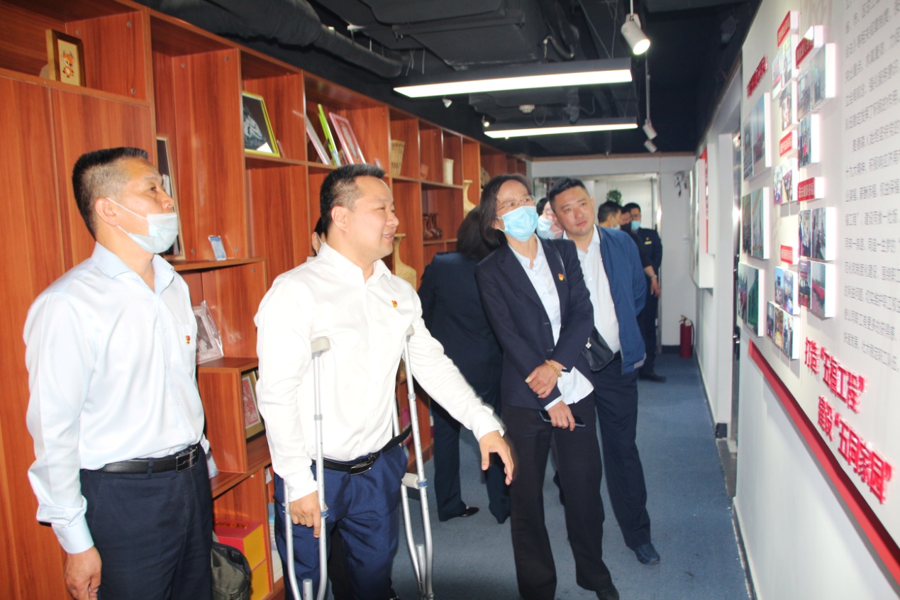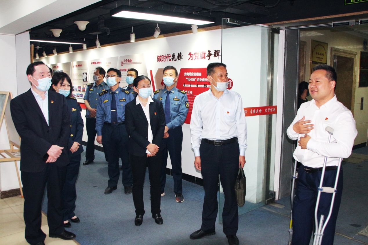 王勇博士向各位领导详细介绍企业“党员突击队”建设和“长鼓型”党建工作法