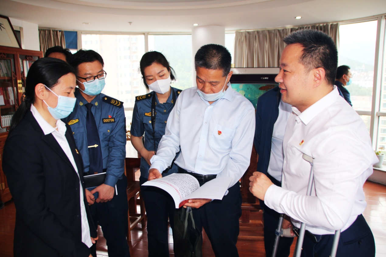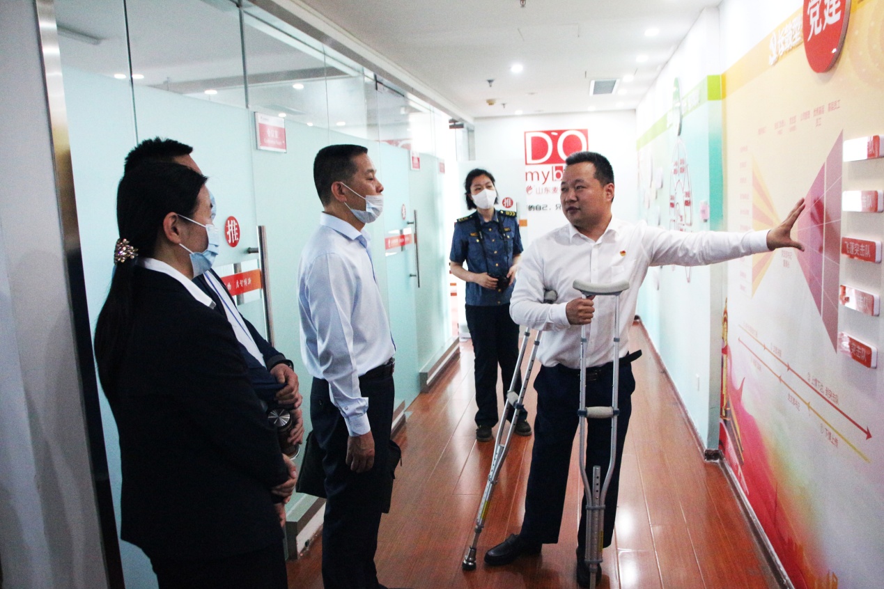 在王勇博士的带领下,齐鲁交通发展集团有限公司济南分公司各位领导对我集团办公区域进行了全面参观,并仔细察看了企业“疫情防控工作”系列文件,支部党员“手抄党章”,“防疫抗疫、共克时艰”大讨论材料等支部党建资料和企业复工复产材料。