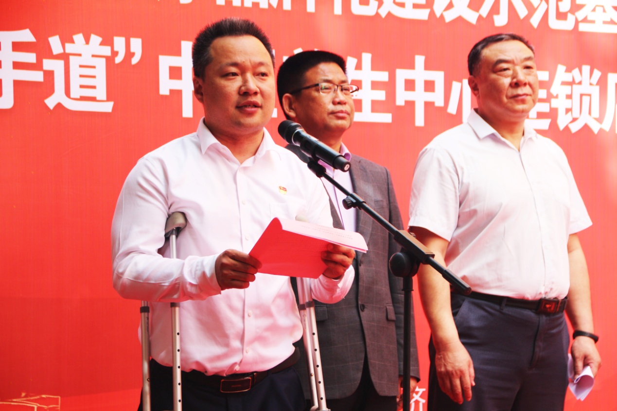 山东省残联党组成员、副理事长冯雷和济南市残联党组书记、理事长孙君涛共同为济南市盲人按摩品牌化建设示范基地揭牌,山东省残联副理事长冯雷同志、济南市残联党组成员、副理事长刘红卫同志分别讲话,在讲话中,领导们对“盲手道”中医养生中心连锁店的开业表示祝贺的同时,为盲人按摩品牌化建设提出了宝贵意见。