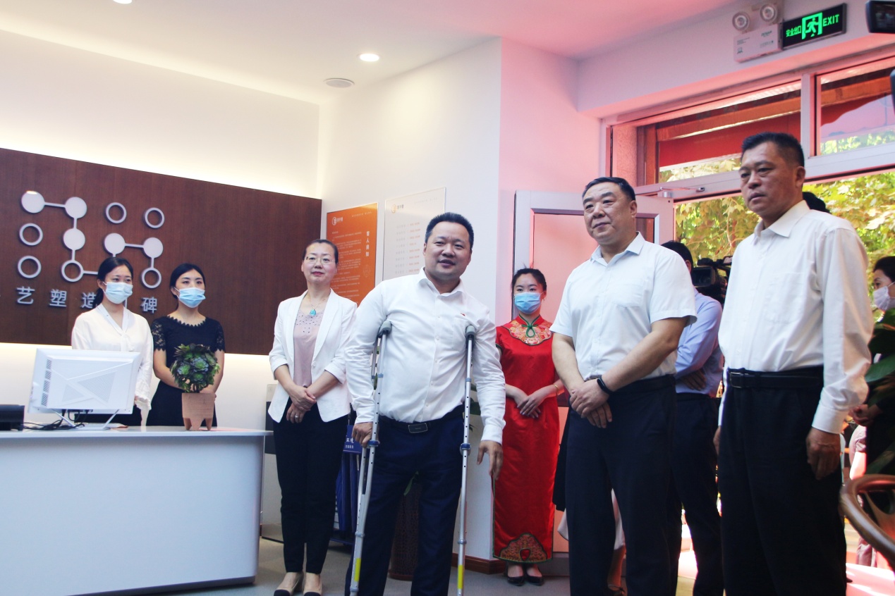 山东省残联党组成员、副理事长冯雷和济南市残联党组书记、理事长孙君涛共同为济南市盲人按摩品牌化建设示范基地揭牌