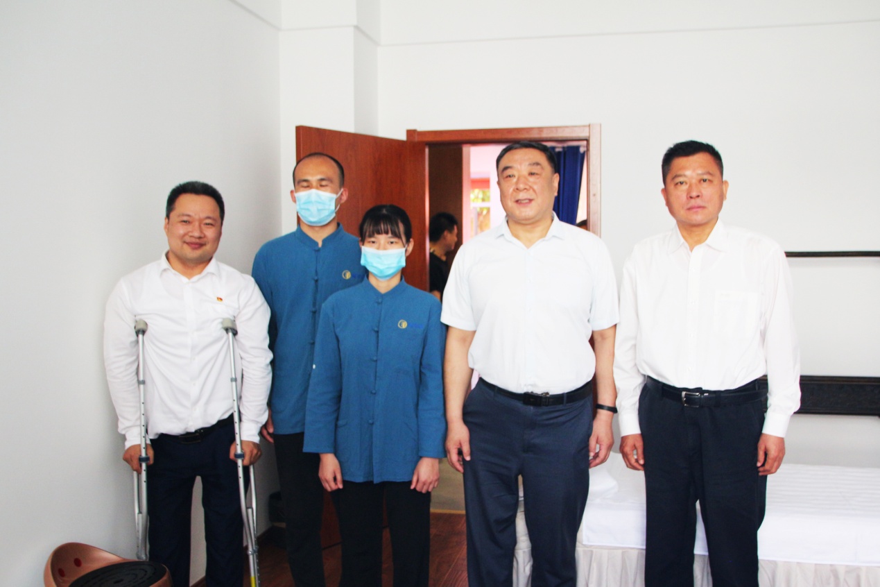 仪式结束后,在王勇博士的带领下,冯雷理事长等领导一行对 “盲手道”中医养生中心连锁店进行了参观,察看了店内按摩室、培训教室、盲人体验室等室内设施,并与店内按摩师们亲切交谈。