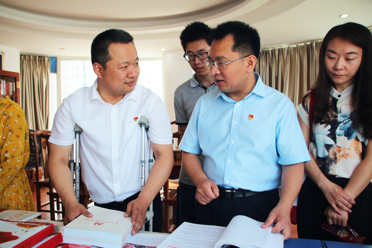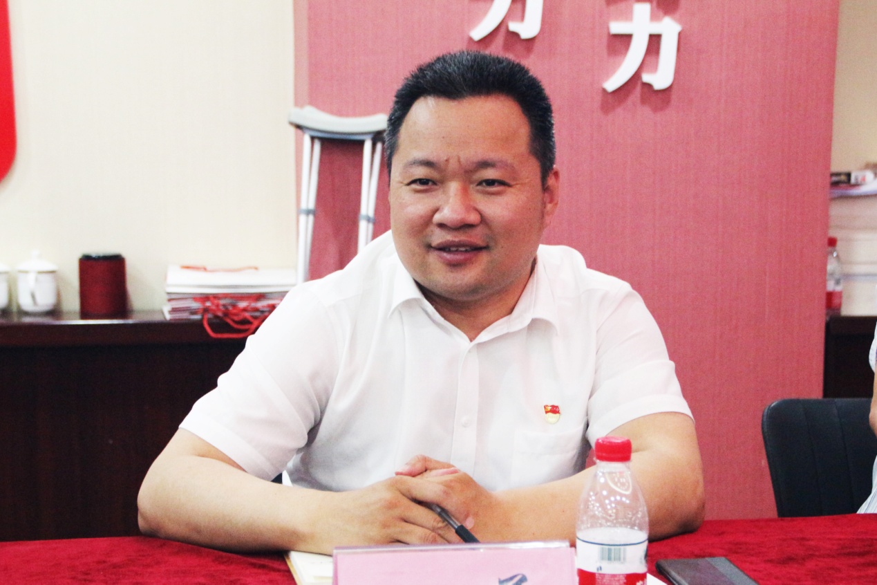 在党群活动室,高庆军部长一行与我集团党支部成员进行交流座谈。