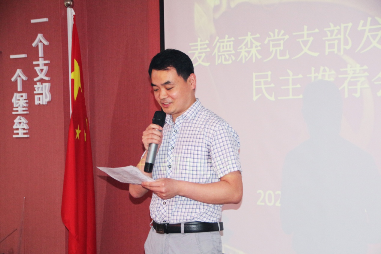 在随后召开的支部委员会议上,经讨论研究,同意以上推荐意见并形成支部决议,由支部书记王勇博士在会上宣读。会后将在集团公共区公示民主推荐情况,并按照组织程序报上级党工委备案。