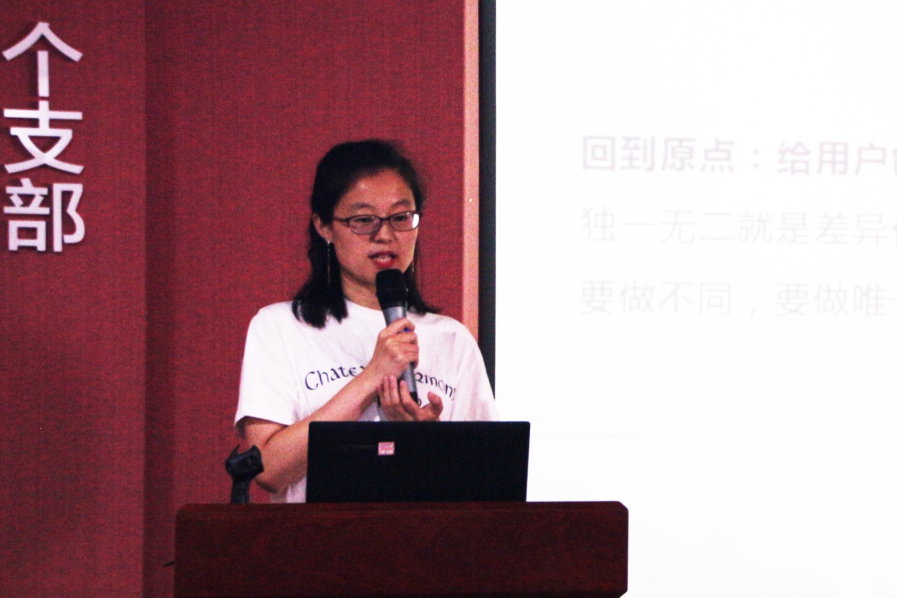 张姗姗总监为大家详细阐释了“给用户创造独一无二的价值”的经营理念。她指出:客户不是为了买产品而买产品,客户买的是独一无二的价值;她希望大家通过此次培训课程的学习,拿出“信念”和“方法”,做不同、做唯一,在不断的工作实践中提升自我、创造价值。