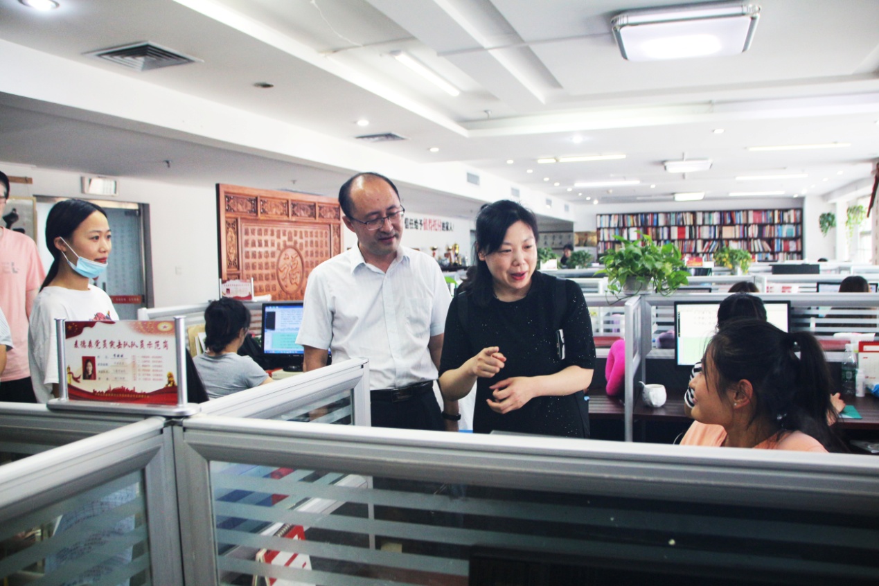 在桑守正同志的引导下,张钢主任一行依次参观了集团党员活动室、残疾人文化艺术长廊、企业荣誉展架以及“搜搜中医”大数据平台等各业务职能部门办公区域。参观过程中,张钢主任就“工龄”“薪资待遇”“岗位职责”等内容与企业残疾人员工亲切交谈。