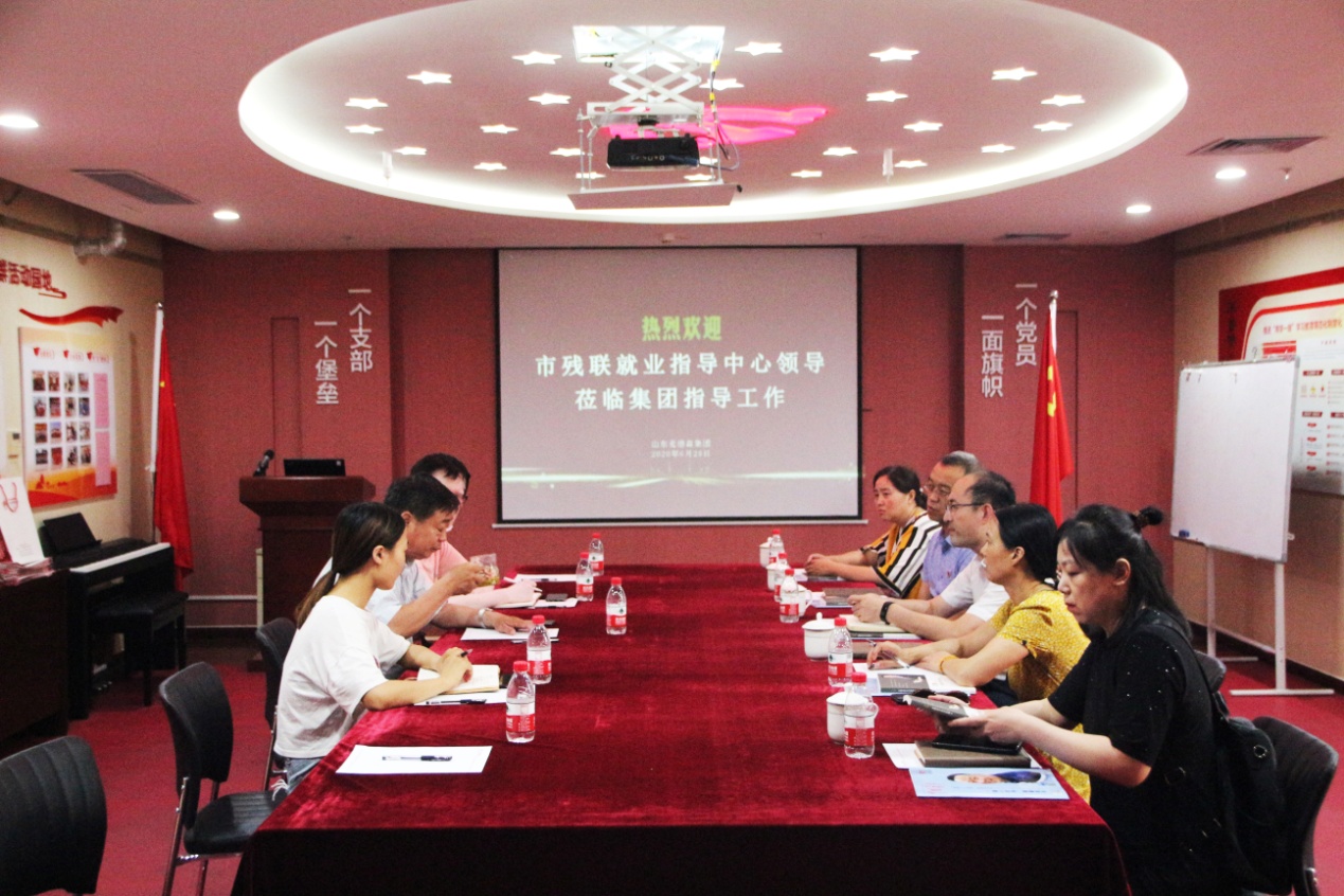 6月29日,济南市残疾人劳动就业服务中心主任张钢一行莅临我集团调研指导残疾人就业创业工作,并举行交流座谈。受集团党支部书记王勇博士委托,党支部副书记桑守正等陪同调研。