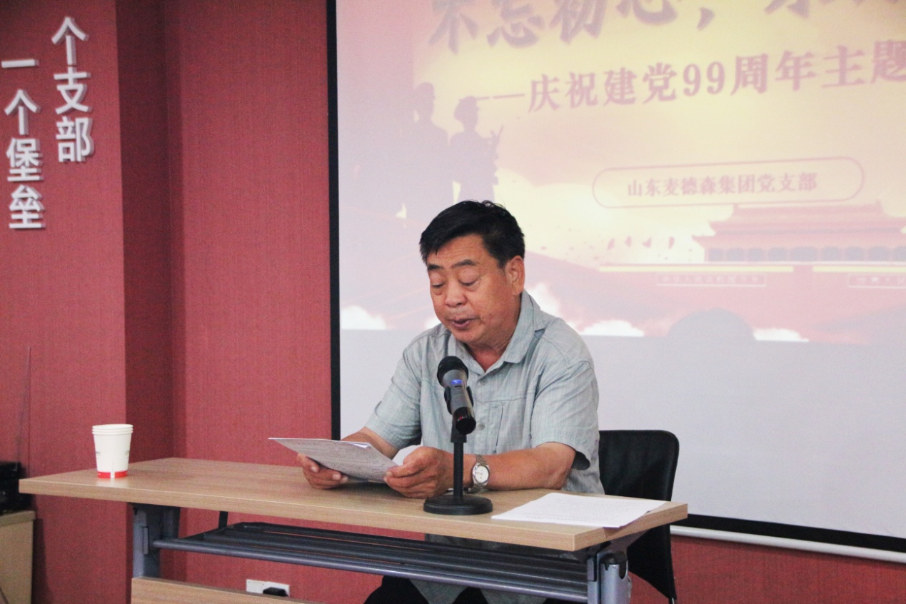 为庆祝建党99周年,继承和发扬党的优良传统和作风,引导党员和党员突击队队员不忘初心、牢记使命,充分发挥党员的先锋模范作用,团结带领广大员工以更加饱满的热情、昂扬的斗志、务实的作风投入到集团各项工作中,6月30日,我集团党支部在党群活动室组织开展“不忘初心、永跟党走”——庆祝建党99周年主题党日活动。集团党支部书记王勇博士出席活动并讲授专题党课,党支部副书记桑守正主持活动,集团全体党员、党员突击队队员参加活动。