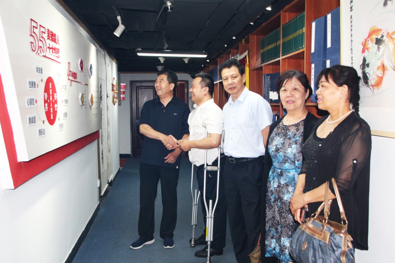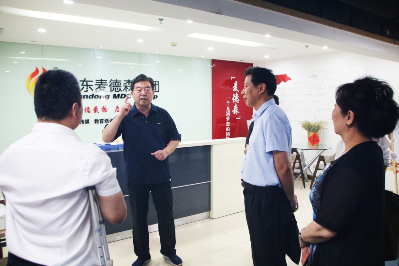 参观过程中,王勇博士向各位领导详细汇报了我集团发展历程、企业文化,并针对集团Logo的设计理念和蕴含的深层次意义进行了详细的阐释。王勇博士表示,麦德森Logo中,形似凤凰的三只金翎象征着麦德森三种社会责任:一是对员工的责任,让员工在麦德森更有幸福感;二是对客户的责任,让客户在麦德森更有成就感;三是对社会的责任,无论是残障人士、贫困家庭、还是孤寡老人,只要是需要帮助的人,麦德森都将让大家更有获得感。