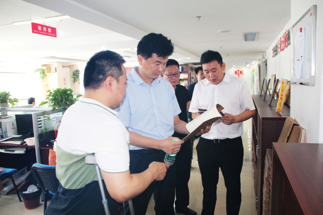 “史志事业部作为我集团核心业务之一,主要为全国各地政府及企事业单位承揽地方志、部门志、行业志、年鉴、画册等印刷出版业务,为广大客户提供策划编纂、专家审稿、书号办理、排版设计、印刷装帧一条龙服务”。参观过程中,王勇博士向各位领导详细介绍了集团史志事业部的工作。
