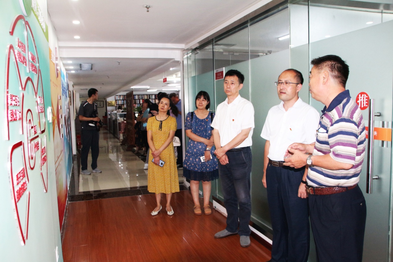 活动伊始,在桑守正同志的引导下,市残疾人劳动就业服务中心党支部各位党员对集团党建宣传墙、企业荣誉展架以及各业务职能部门办公区域进行了参观。