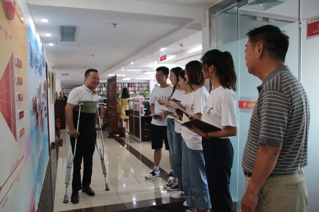 8月3日,山东大学硕博服务团二队在队长郝婉莹的带领下来我集团开展“落实发展理念,加快经济复苏”参观学习活动。集团党支部书记王勇博士、副书记桑守正等陪同参观。