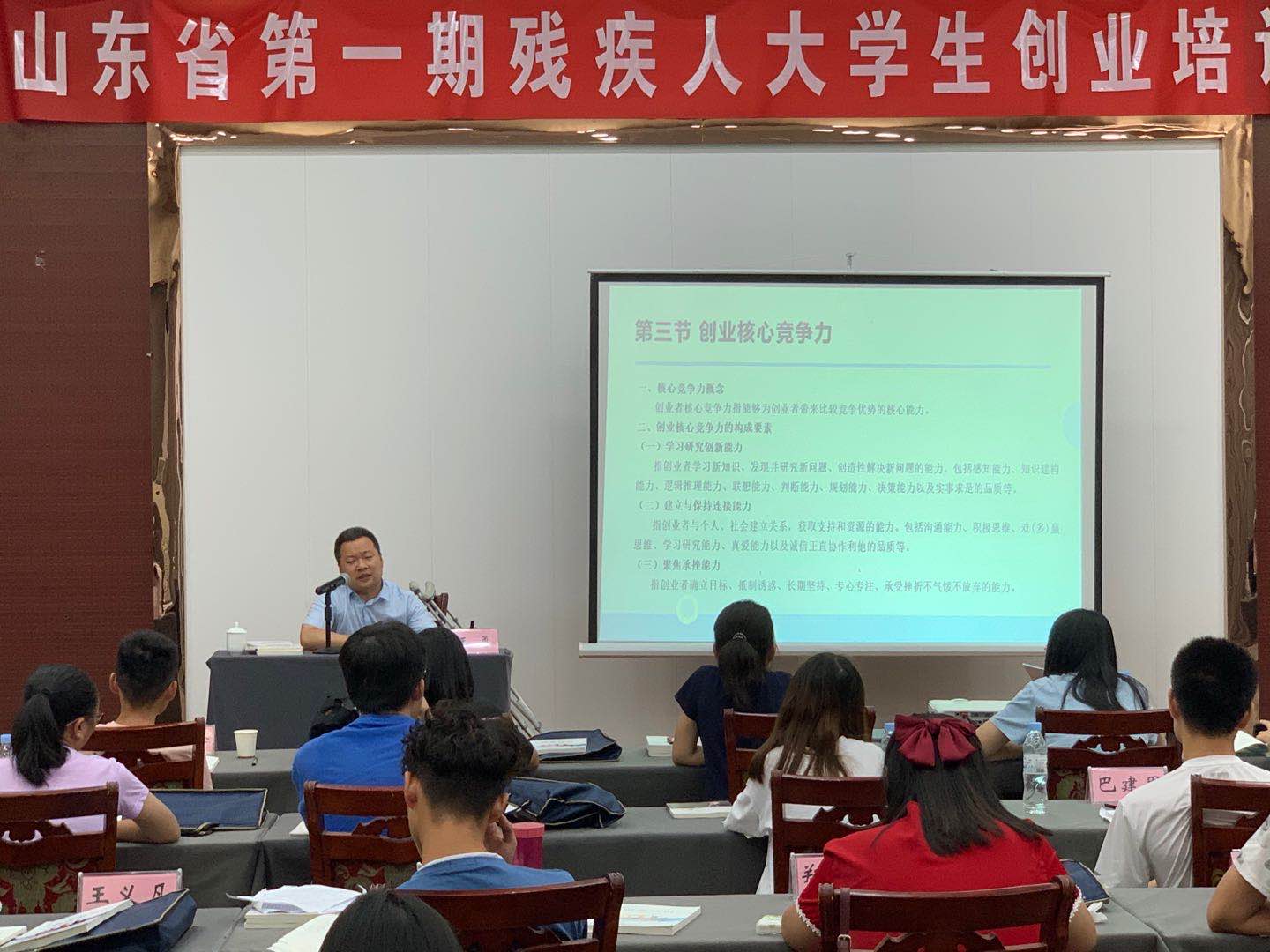 8月12日,山东省残疾人大学生就业创业培训班第三天培训课程继续在山东原山艰苦创业教育基地开课,我集团党支部书记王勇博士应邀担任课程主讲,并与现场残疾人大学生分享了他富有传奇色彩的“创业之道”。