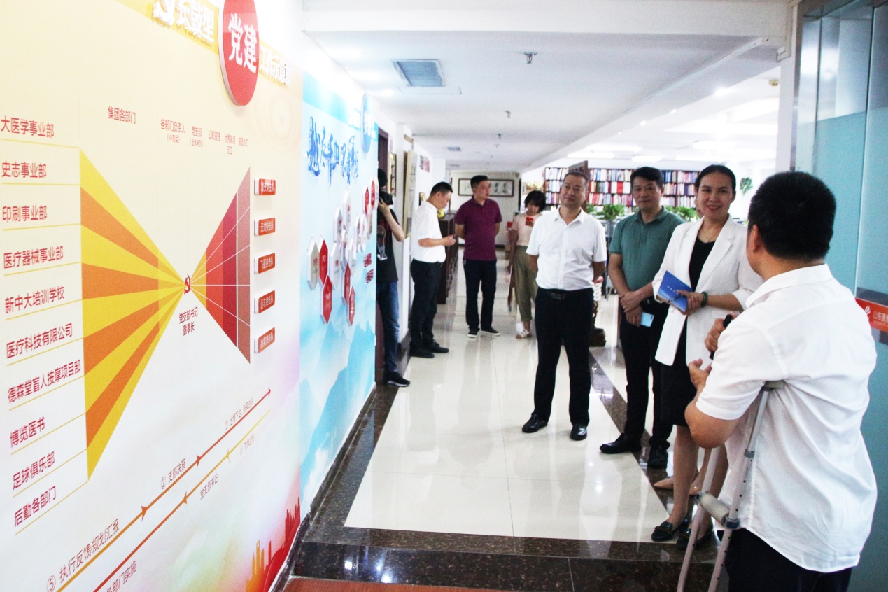 在王勇博士的引导下,各位领导对我集团进行了参观,对企业各项业务和党建工作进行了深入了解,并查看了集团党员突击队手抄党章、“三会一课”记录、“金点子”汇编等企业党建工作材料。