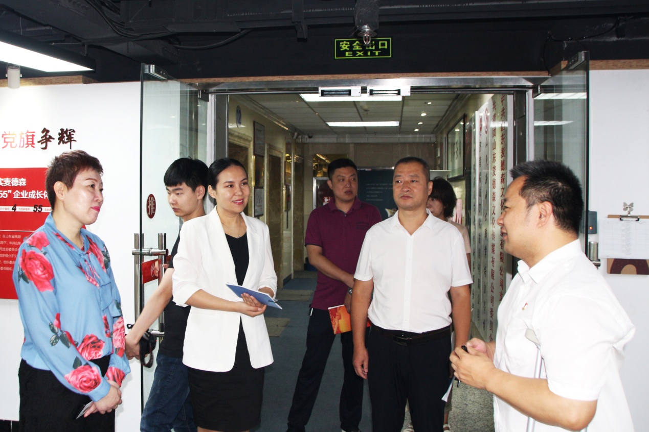 8月20日,历下区燕山街道办事处便民服务中心主任王冬梅、办事处经济发展中心主任马明哲、山东丰泽商业管理有限公司副董事长刘园园等领导一行莅临我集团参观考察,集团党支部书记王勇博士等陪同考察。