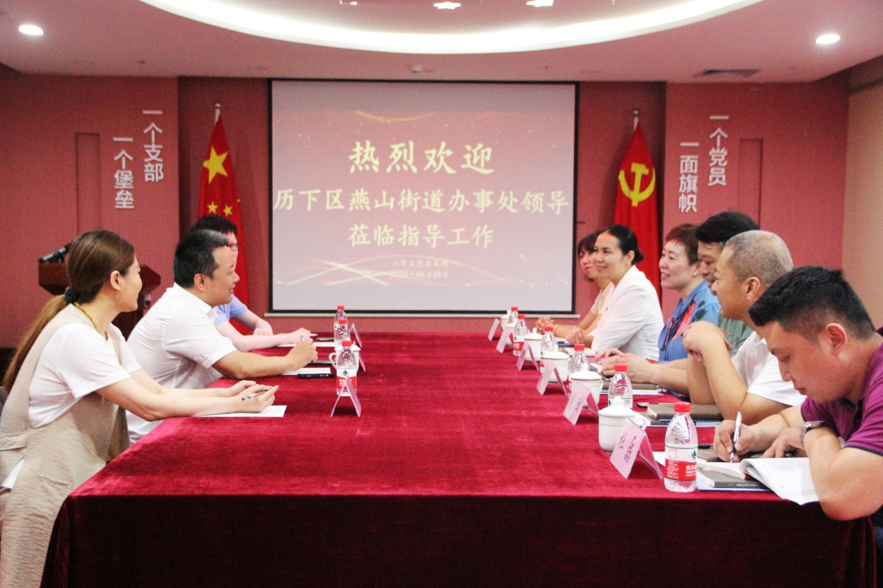 历下区燕山街道办事处、山东丰泽商业管理有限公司各位领导与王勇博士等集团代表在党群活动室进行了交流座谈。